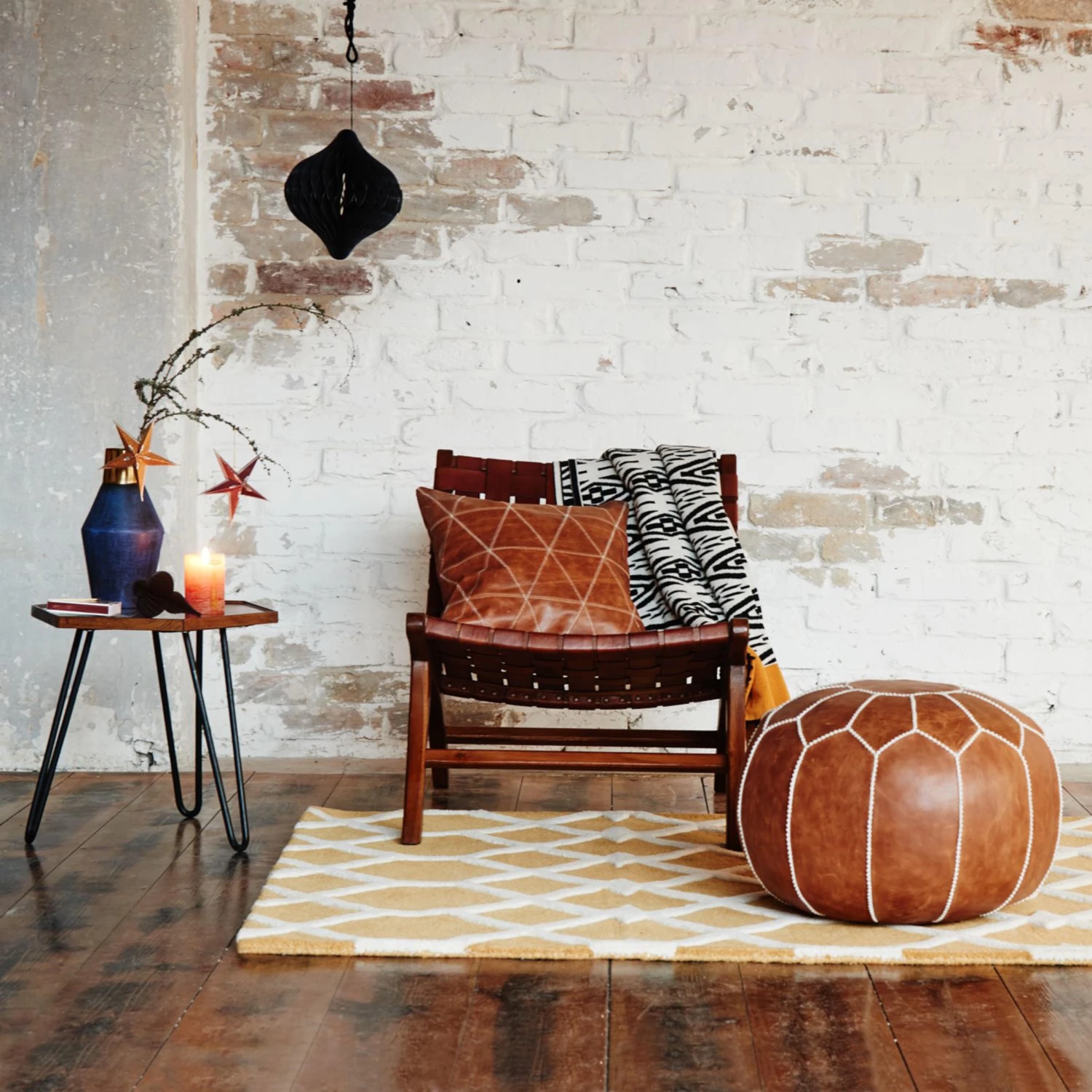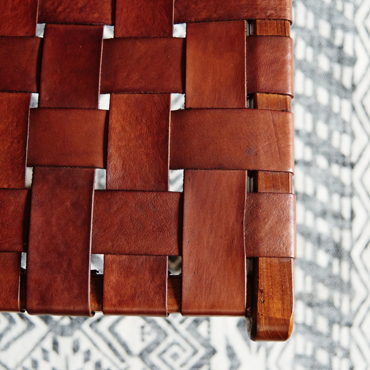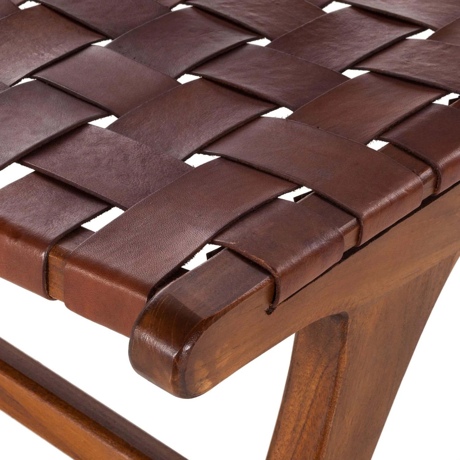 Heimeliges Flair und natürliche Materialien stehen bei dieser Collection im Vordergrund. Da passt ein Stuhl aus edlem Teakholz, bespannt mit Lederstreifen auf jeden Fall gut ins Bild. Das dunkle Holz geht mit dem sanften Leder eine perfekte optische Symbiose ein. Seine Form begünstigte eine entspannende Sitzhaltung.