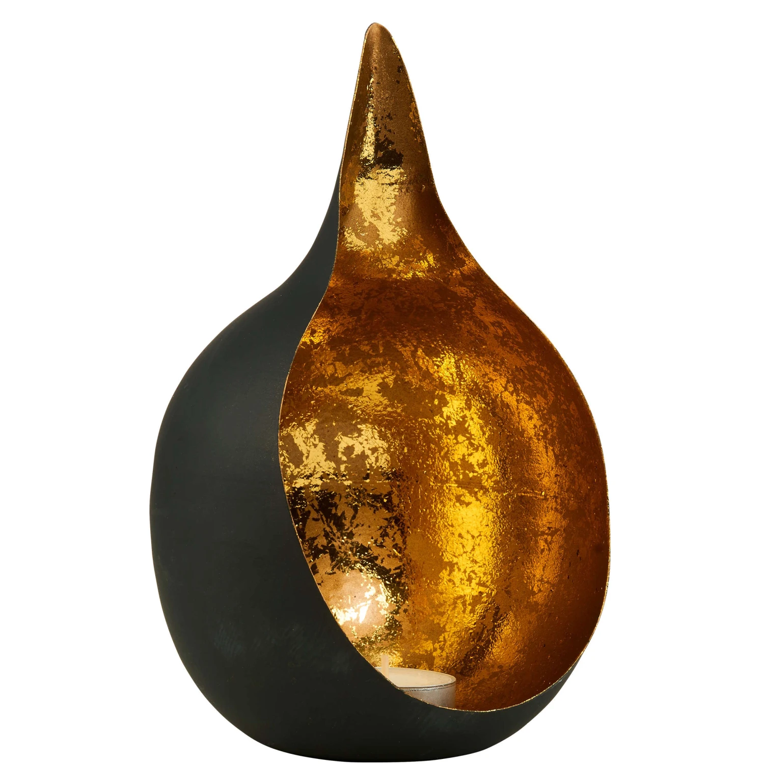 Orient trifft Moderne: Der Delight-Teelichthalter inszeniert alte Formen auf besonders spannende Art ganz neu. Die offene Kugel mit aufragender Spitze ist von außen schlicht und von innen in gebrochenem Metallic mit Antik-Optik gehalten. So entsteht ein faszinierender Gegensatz. In zwei Größen erhältlich.