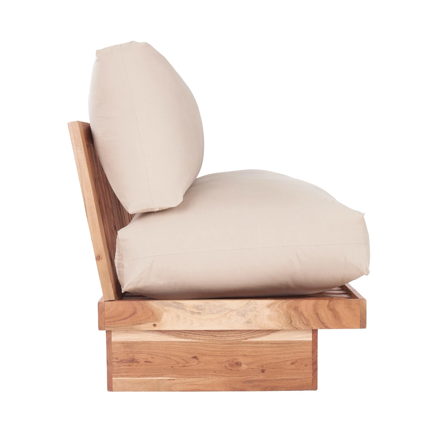 Das könnte Ihnen so passen: Mit dem 3-teiligen Dockland Loungeset gestalten Sie Ihre extra gemütliche Lounge-Ecke nach Ihren Vorstellungen, z.B. auf der überdachten Terrasse. Denn Sessel, Sofa und Couchtisch aus wetterfestem Akazienholz können ganz nach Belieben und vorhandenem Platz über Eck oder in einer Reihe, mit Tisch seitlich oder mittig davor angeordnet werden, natürlich auch im Wintergarten oder Wohnzimmer. So entsteht eine lässige Wohnlandschaft, die mit extra dicken, weichen Kissen richtig Lust darauf macht, lange Abende und ganze Wochenenden einfach nur zu faulenzen.