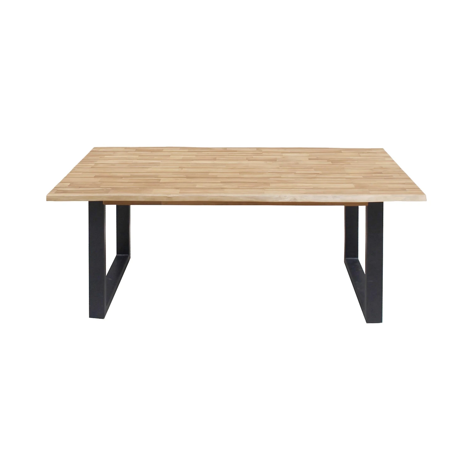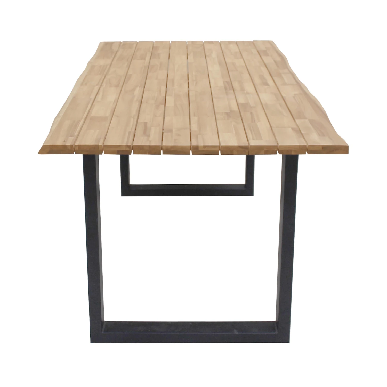 Clean, modern oder industrial sind genau Ihr Style? Dann passt der Edgewood Gartentisch perfekt auf Ihren großen Balkon oder Ihre Terrasse. Seinen besonderen Charakter verdankt der Tisch den Kufen aus schwarzem Eisen und der Platte aus Akazienholz. Einzelne kleine Holzleisten wurden hierfür zu großen langen Leisten verleimt, wodurch eine markante Musterung entsteht. Die längliche Tischkante ist zudem schräg abgeflacht und greift damit den Look einer Baumkante auf. Passende Gartenbank und 3-teilige Essgruppe mit Tisch und 2 Bänken erhältlich.