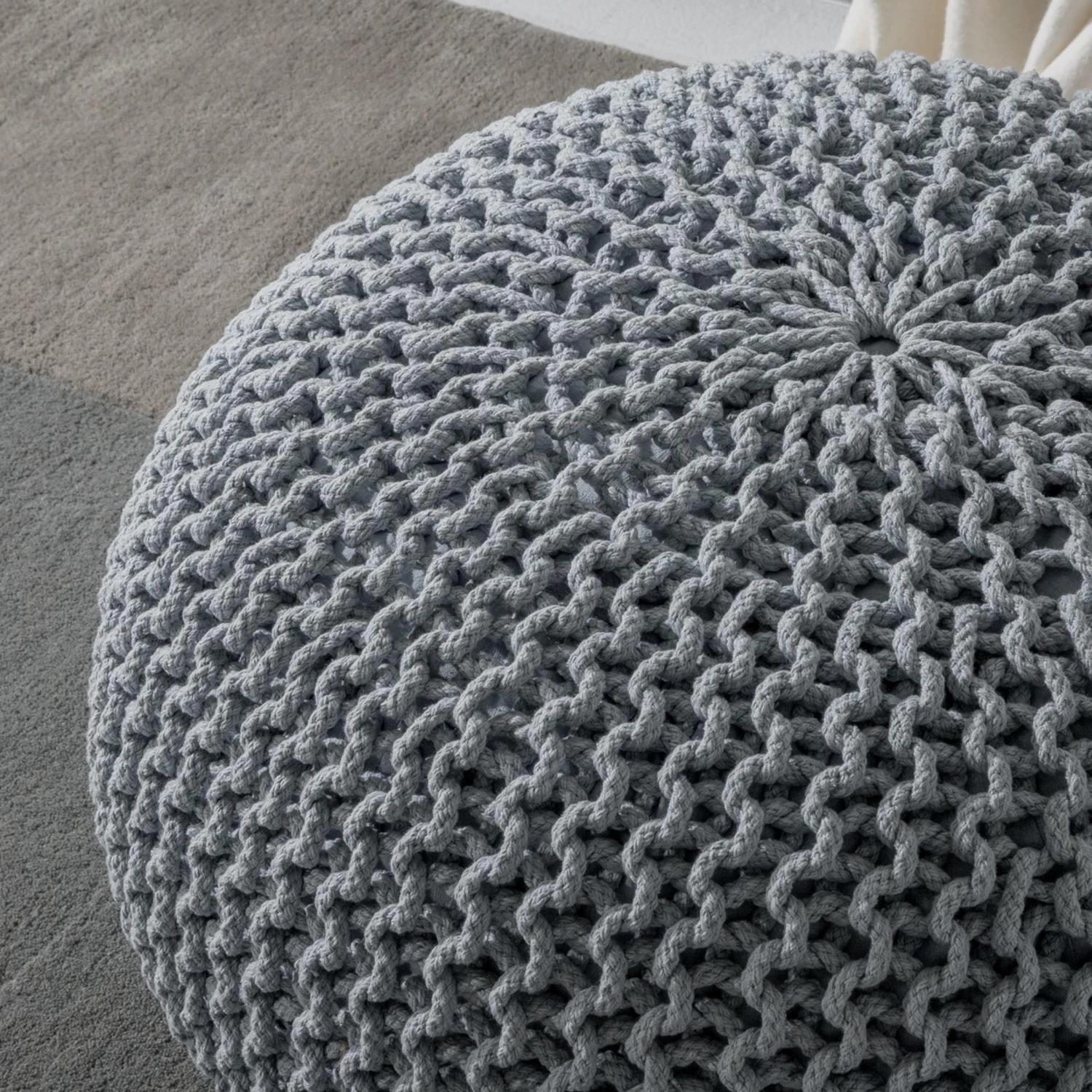 Dieser Pouf ist handgemacht , daher kann das Design und die Größe teilweise etwas abweichen.<br> Durch den Gebrauch können sich Fäden oder Schlaufen lösen, diese bitte abschneiden.<br> Im Laufe der Zeit wird die Füllung des Poufs zusammengedrückt, wodurch sich die Höhe des Poufs verändern kann.