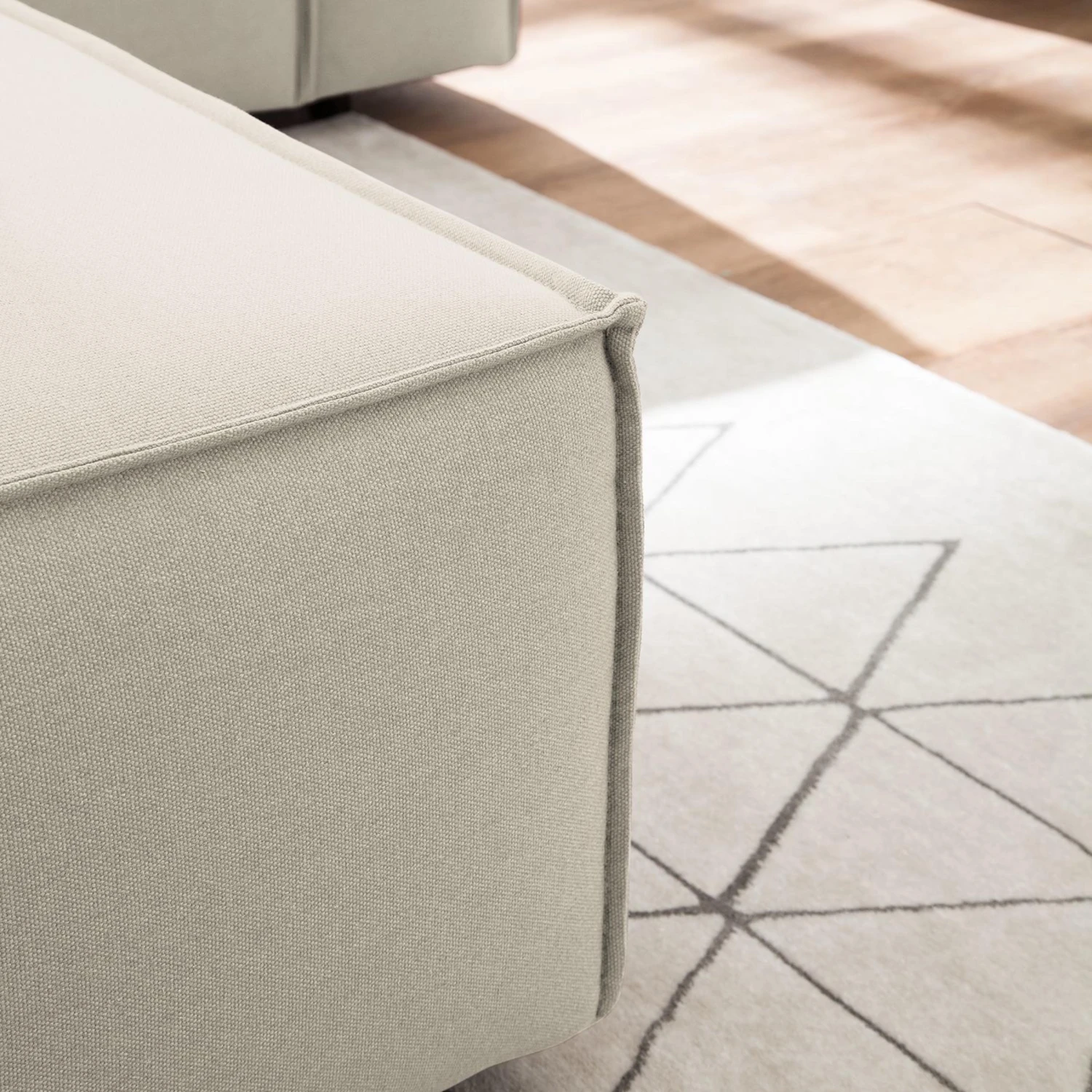 Der praktische Polsterhocker Kinx ist die optimale Ergänzung für das Sofa Kinx. Dabei kann er noch viel mehr. Dank des stabilen Holzuntergestells und der hochwertigen Kaltschaumfüllung bietet er nicht nur Füßen Halt, sondern kann auch als individuelle Abstellmöglichkeit genutzt werden. Zudem eignet er sich hervorragend als zusätzlicher Sitzplatz. Der schöne Bezug aus Strukturwebstoff verleiht dem Polsterhocker Kinx eine elegante Optik und verfügt außerdem über eine sehr angenehme Haptik. Die klaren Linien des Sitzwürfels kommen besonders gut in einer modern eingerichteten Wohnung zur Geltung.