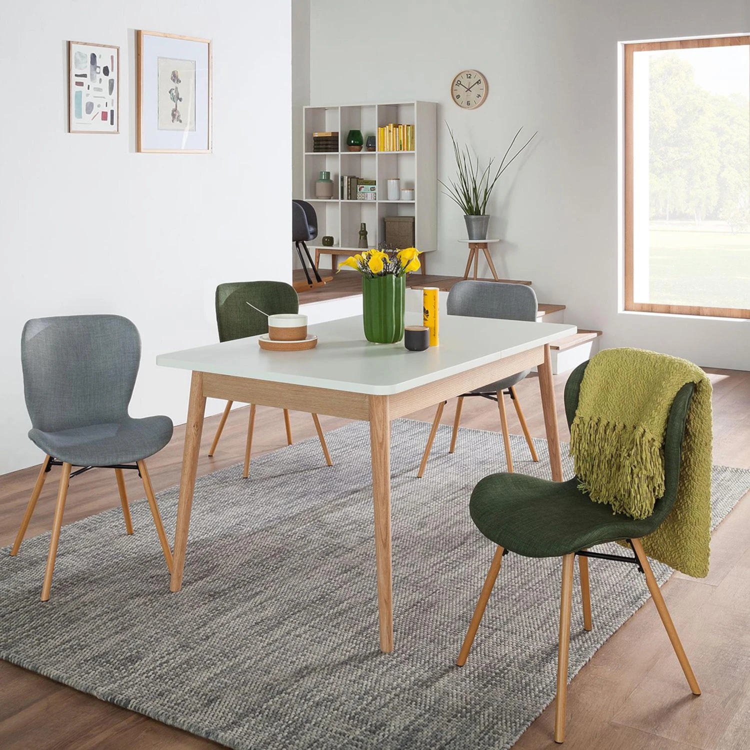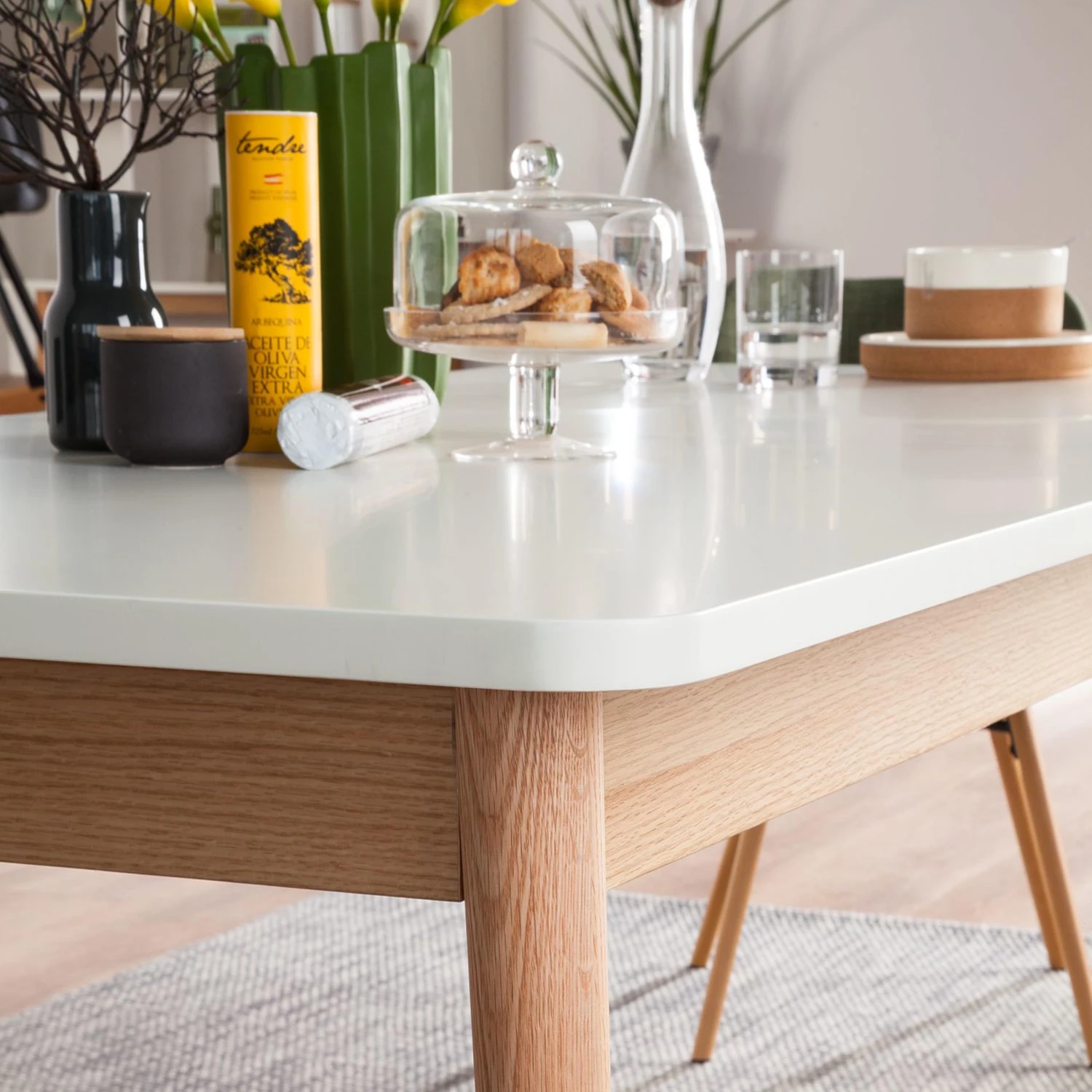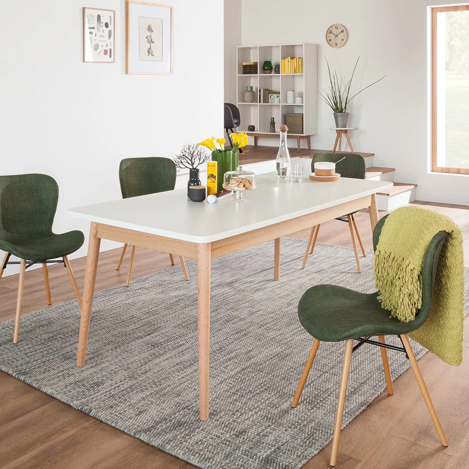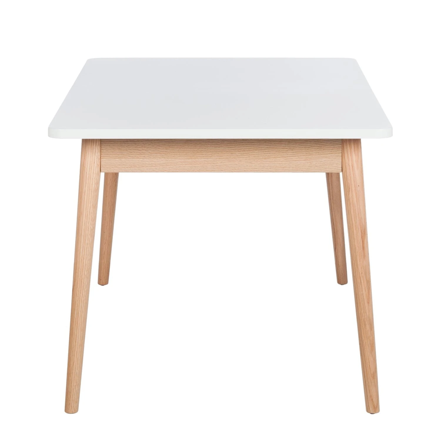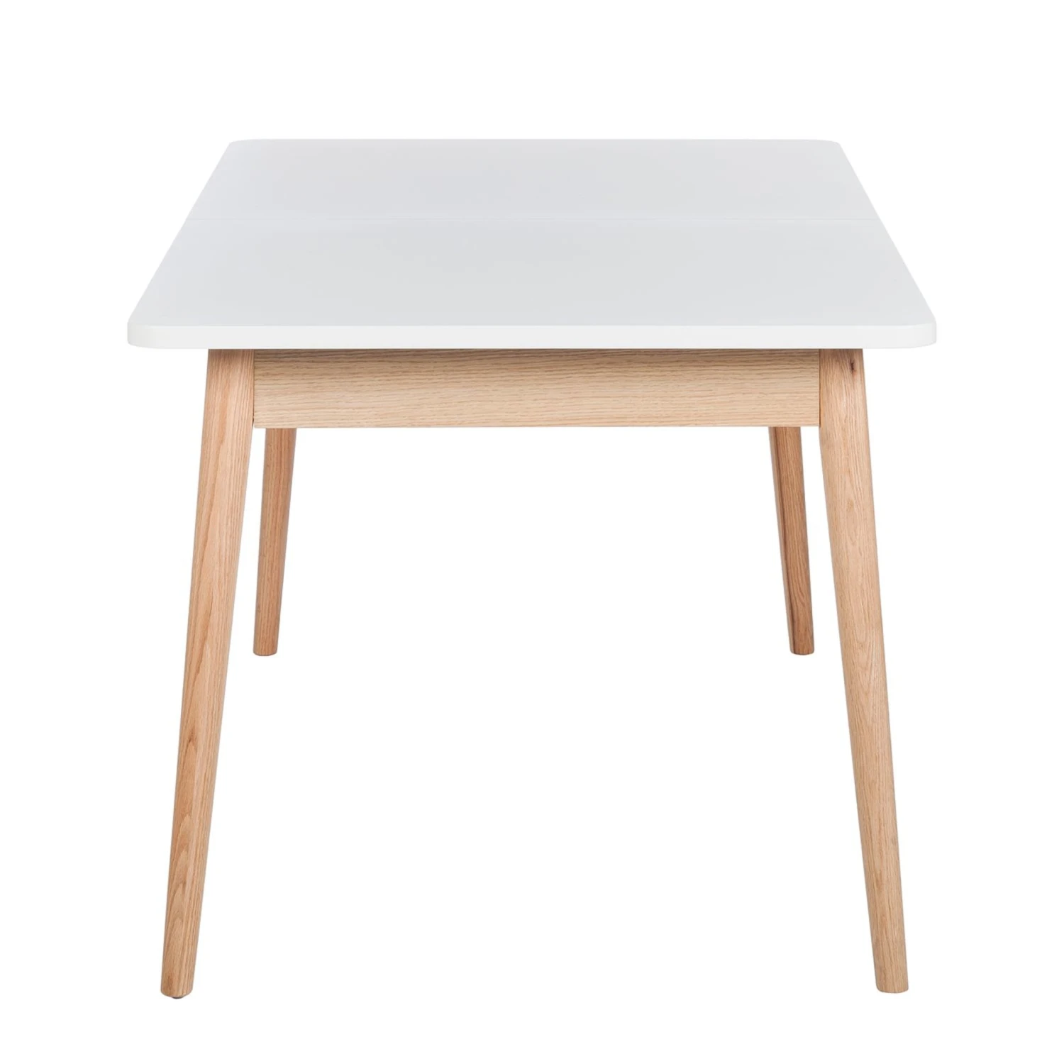 Der ausziehbare Esstisch aus der Serie Lindholm ist eine echte Empfehlung für alle Freunde des skandinavischen Looks. Er kombiniert eine Platte aus MDF in mattem Weiß mit massiven Eichenholzbeinen. Während er sich durch optische Leichtigkeit auszeichnet, steht er doch fest und stabil. Seine Tischplatte kann mit wenigen Handgriffen erweitert werden, das Ergänzungsstück wird im Tisch gelagert.