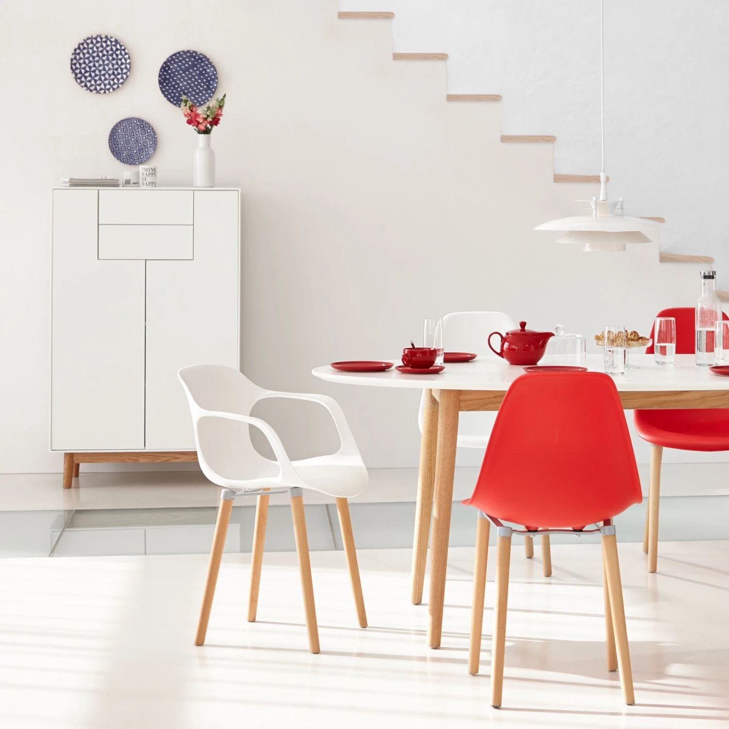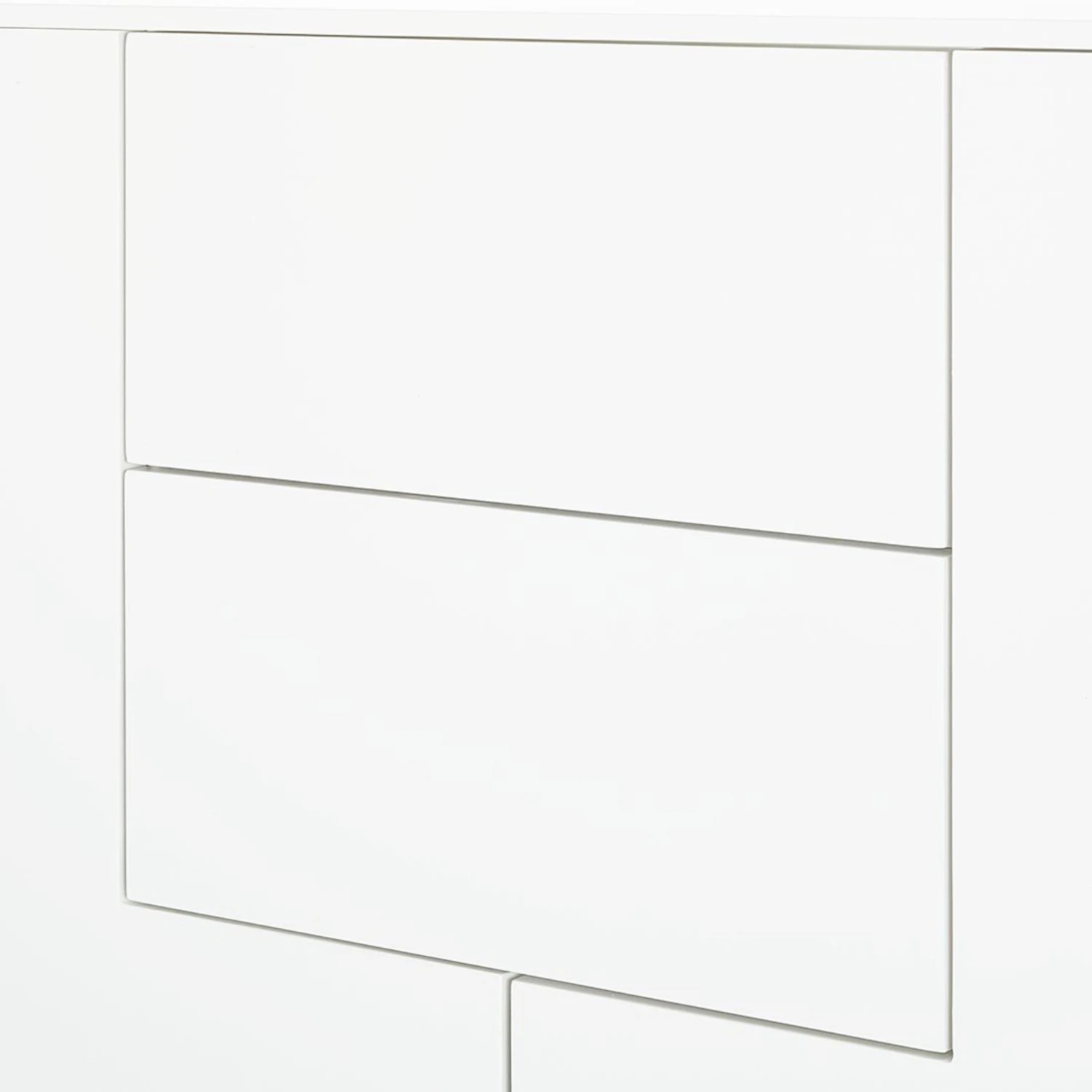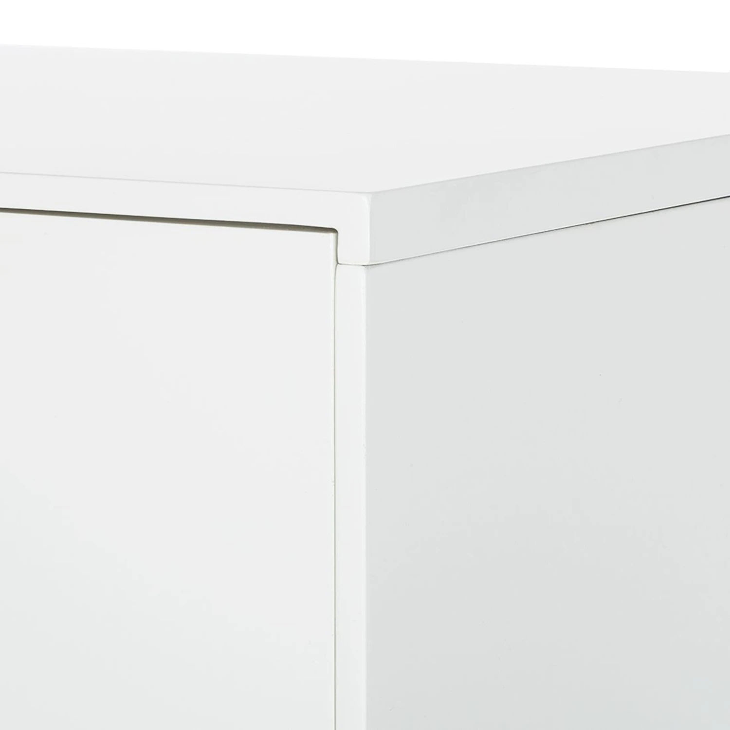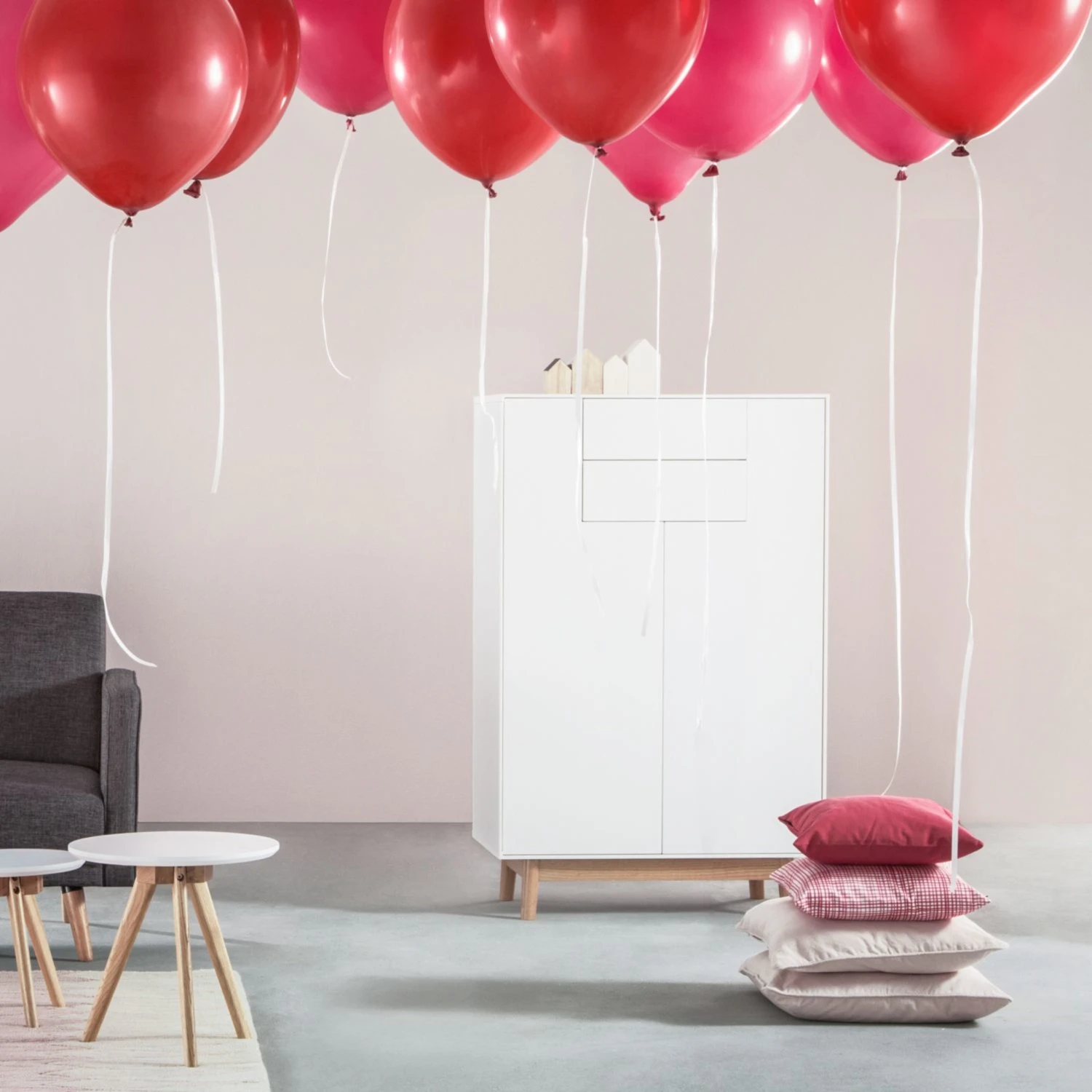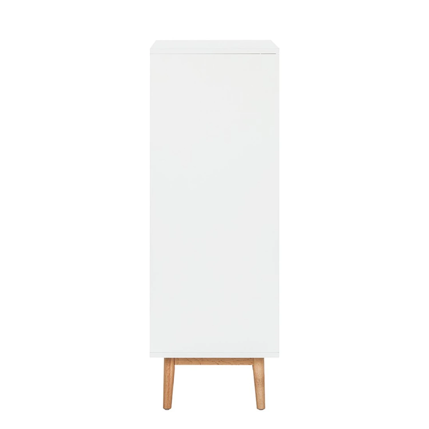 Dieses Highboard ist ein modernes Möbelstück, das im Design mit einem minimalistischen Look überzeugt. Dank der dezenten Geradlinigkeit und der aparten Formsprache integriert sich das weiße Möbelstück einwandfrei in jeden Wohnraum. Das reduzierte Design wird durch das filigrane Gestell aus massivem Eichenholz zusätzlich betont. Das Highboard sorgt mit jeder Menge Stauraum für ein aufgeräumtes Ambiente in Deinem Zuhause. Der schöne Blickfang bietet hinter zwei geschlossenen Türen und in zwei Schubladen jede Menge Platz für Deine Habseligkeiten. Dank der verstellbaren Einlegeböden findet auch Größeres in dem Highboard seinen Platz. Ein fast unsichtbares Highlight: Die Schubladen sind mit der smarten one-Touch-Funktion ausgestattet.