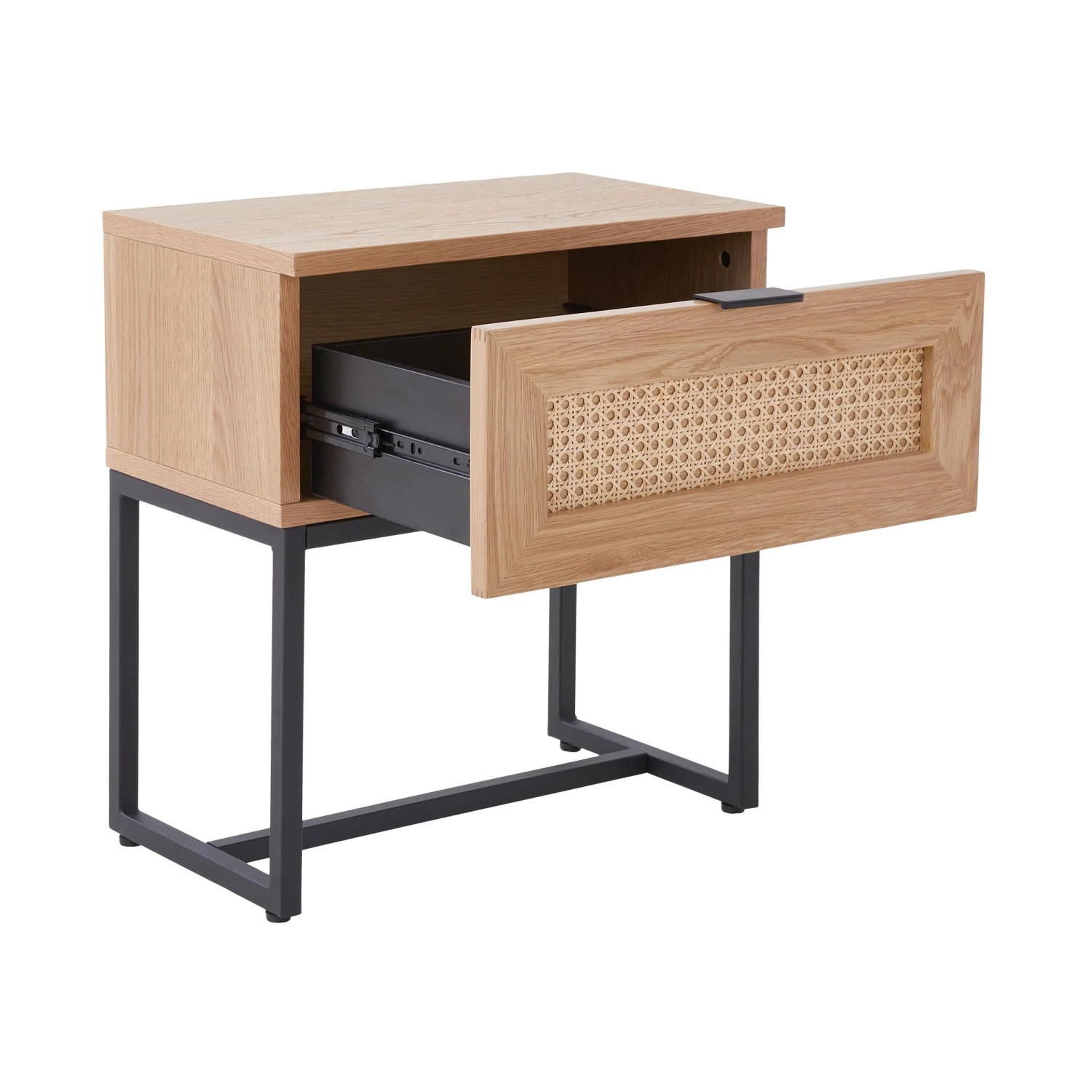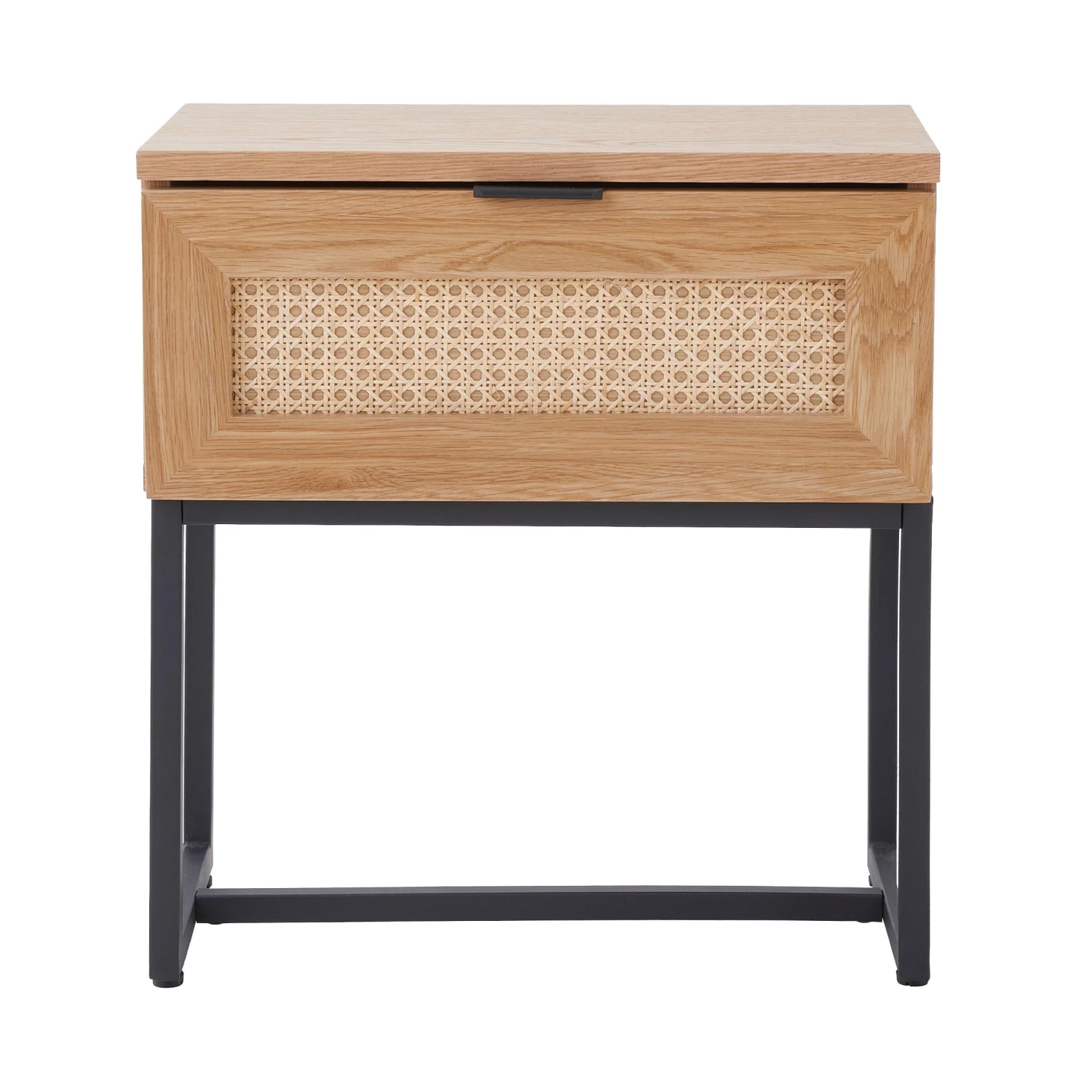 Ein Möbelstück der neuen Generation: Das Little Vienna Beistellschränkchen kombiniert Metall, Eichenholzfurnier und Rattan in Wiener Geflecht mit geradliniger, klarer Formensprache. Daraus entsteht ein ungemein modernes Design, das überall in Ihrem Zuhause für Wow- und Aha-Effekte sorgt. Sie platzieren den Bestellschrank z.B. im Wohnzimmer neben Sofa oder Sessel, nutzen ihn im Flur als Aufbewahrung und Ablage oder verwenden ihn im Schlafzimmer als Nachtschränkchen. Überall dort überzeugt das Vienna Beistellschränkchen mit einer Optik, die eher leicht als kompakt wirkt – und das trotz des massiven Gewichts dieses Möbelstücks.
