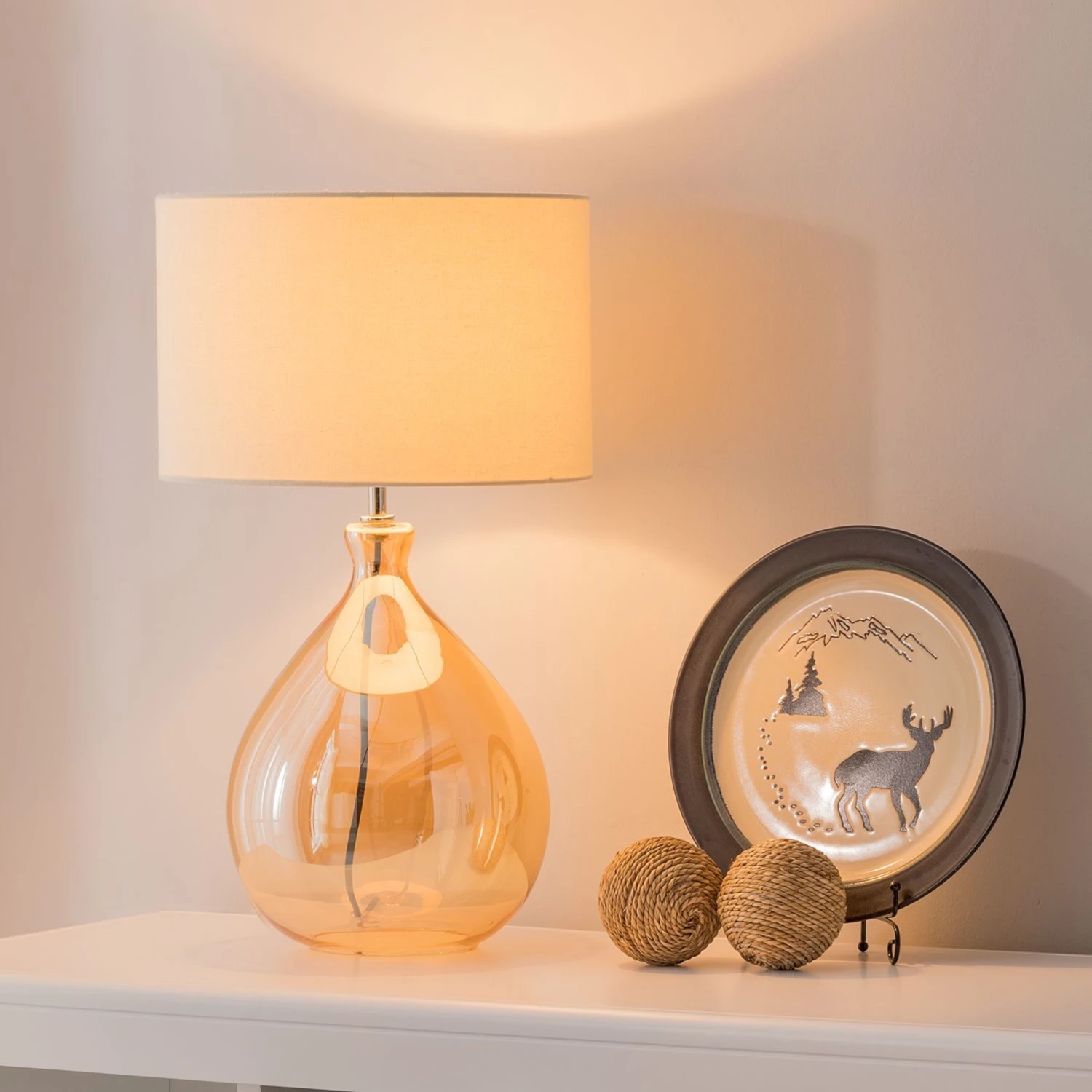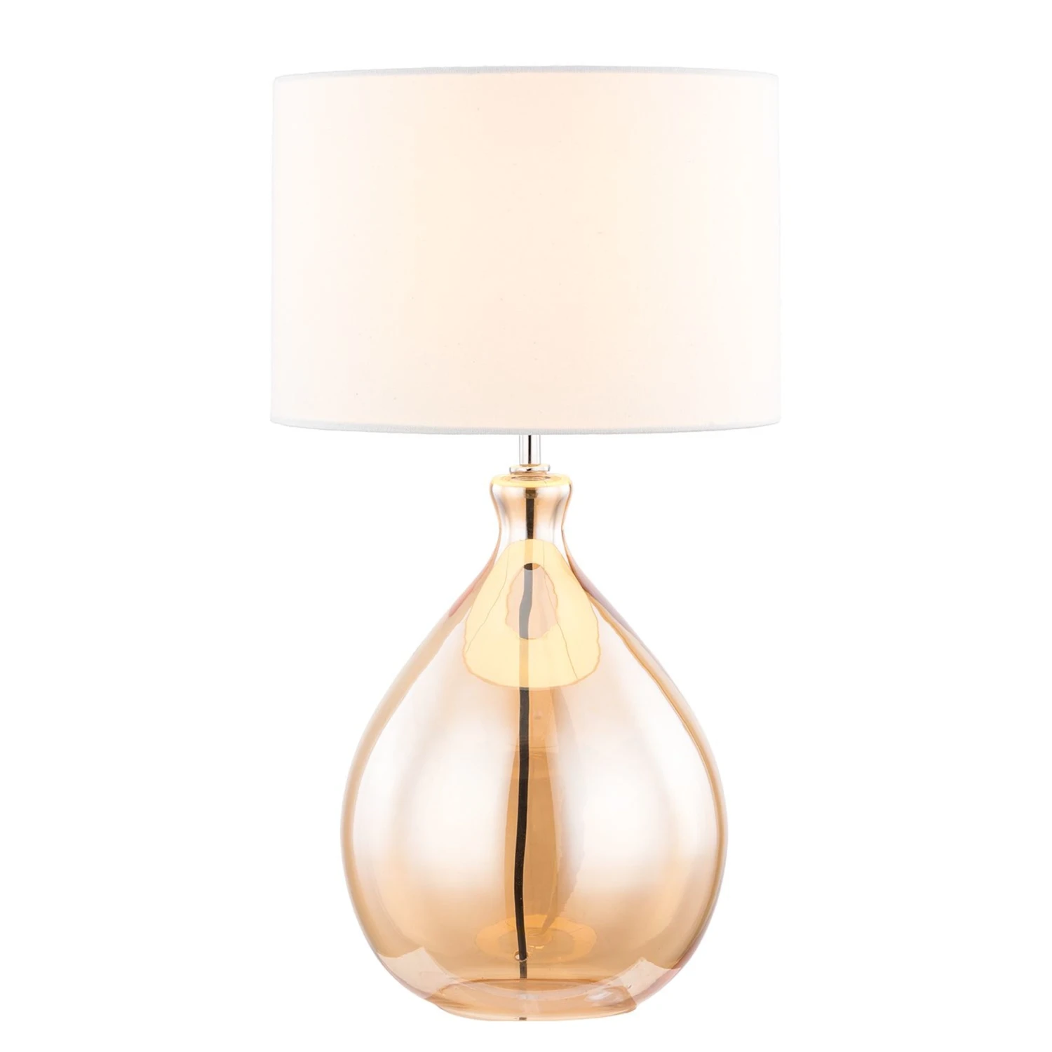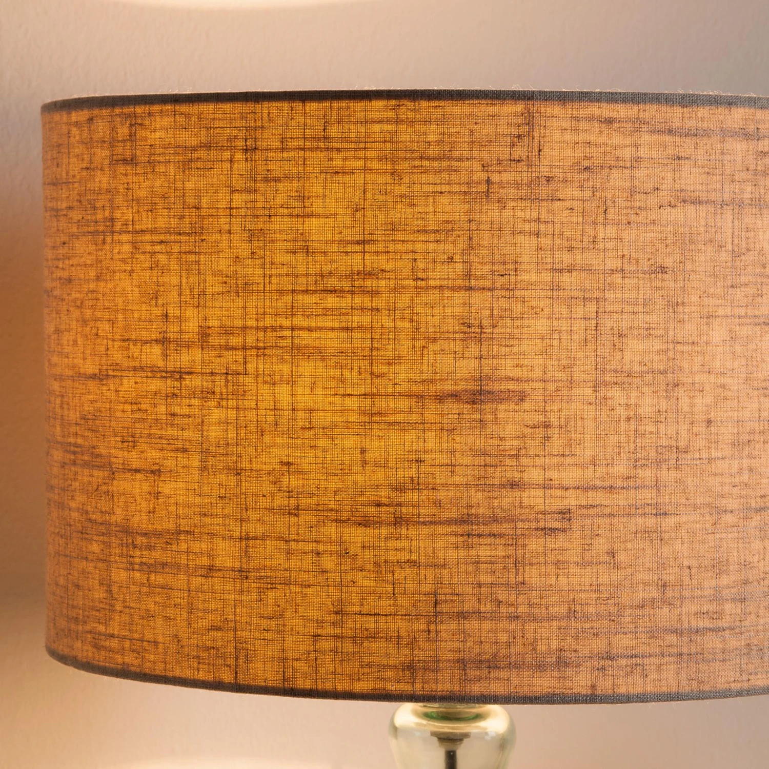 Elegante Kombination aus edlem Glas-Korpus und mattem Baumwoll-Schirm. Diese Tischleuchte verbreitet ein intensives und gerichtetes Licht und passt damit ideal auf jeden Beistelltisch, Couchtisch oder Nachttisch.