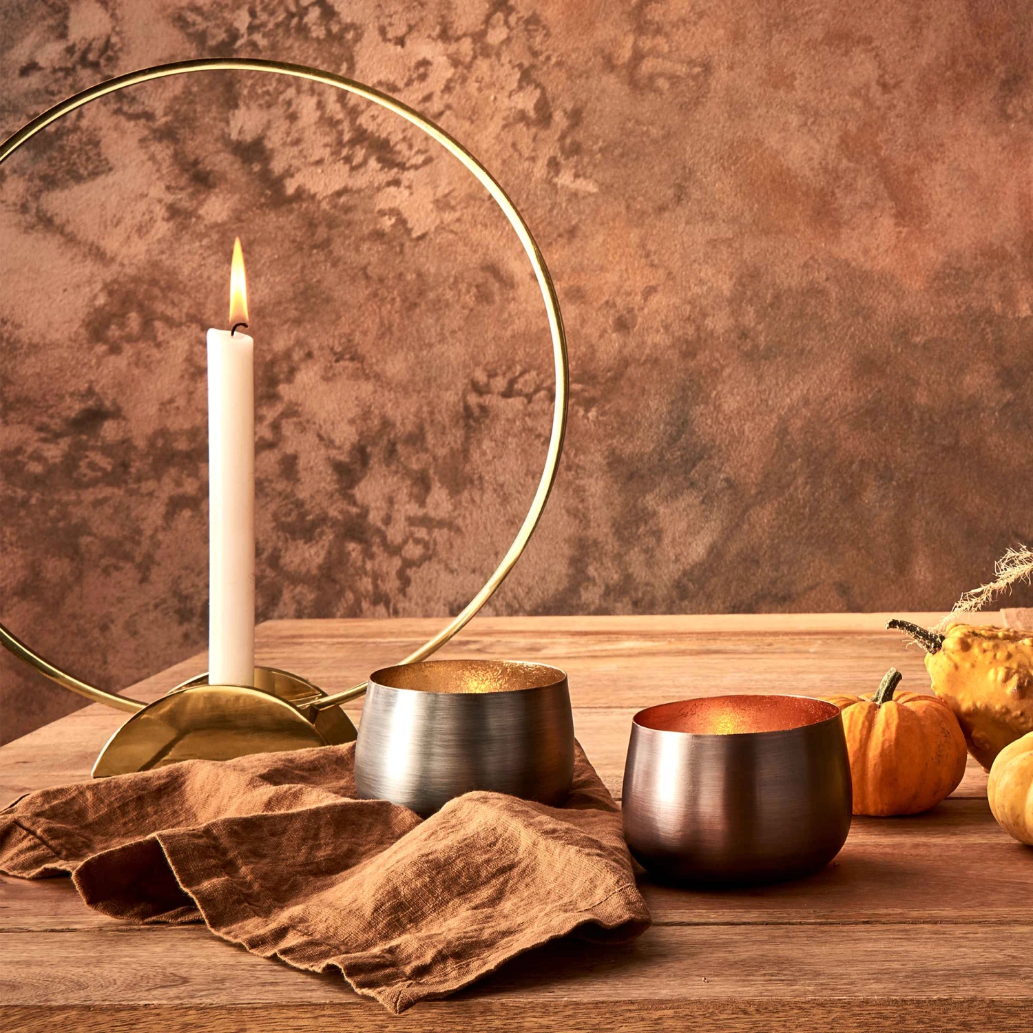 Beim exklusiven Luna Kerzenhalter in Gold unterstreicht echtes Messing die elegante Form. Das hochwertige Metall rostet nicht und verfügt über eine solide Stabilität. Besonders geschätzt werden auch sein kostbarer Glanz und die charakteristische Patina, die Messing im Laufe der Zeit ansetzt, sofern man es nicht poliert. In einer weiteren Größe erhältlich, ideal auch zum Kombinieren.