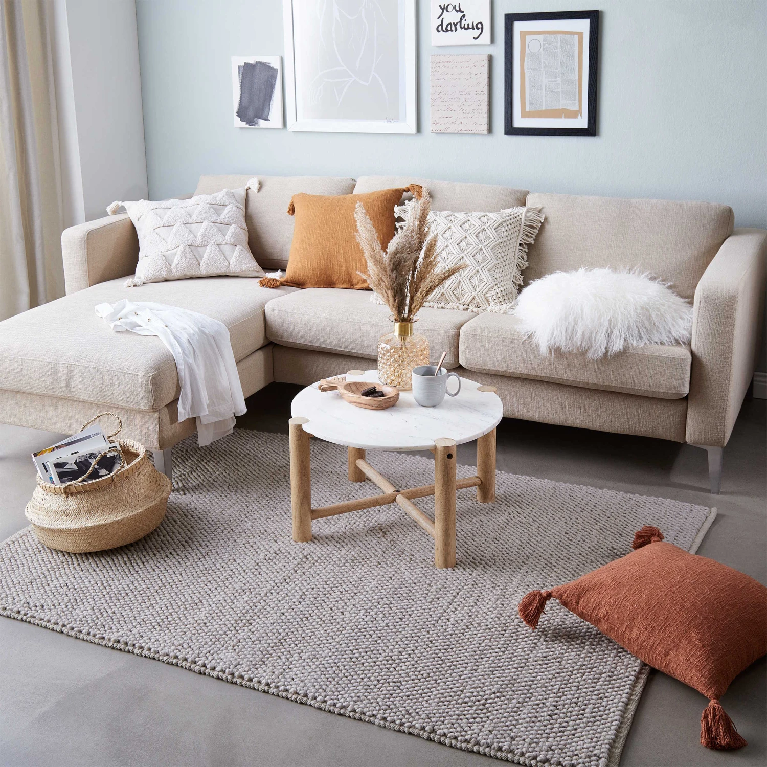 Kühler Marmor trifft warmes Mangoholz – beim Marvelous Marmor-Beistelltisch gehen zwei unterschiedliche Naturstoffe eine harmonische Verbindung ein. Das macht den runden Beistelltisch besonders vielseitig und kombistark. So passt der Tisch zum Skandi-Style, zum natürlichen Wohntrend und in praktisch jedes moderne Interieur.