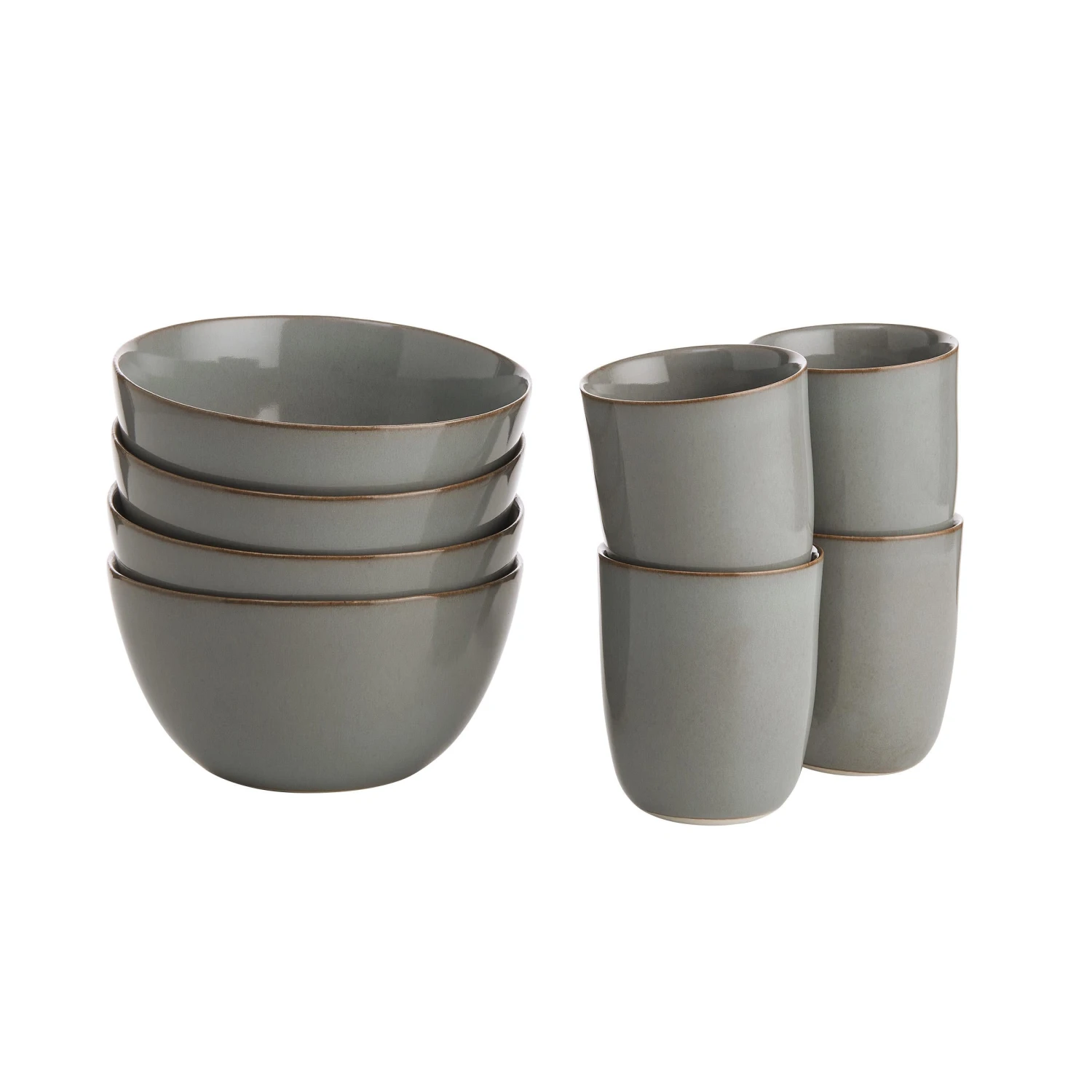 Mit unserer Geschirrserie Native im angesagten minimalistischen Stil kommt der neue Trend auf den gedeckten Tisch! Das 8-tlg. Geschirr-Set aus Steinzeug in der Farbe Grau ist handgefertigt in Portugal. Durch die reaktive Glasur wird jedes Teil der Serie zu einem echten Unikat. Das Set hat eine dünne und hochwertige Scherbe mit einer klaren Formgebung. Durch den unglasierten Boden, wodurch das Rohmaterial zum Vorschein kommt, bringt er einen Manufaktur-Look auf Ihren gedeckten Tisch. Die zusätzlichen Kristalle in der Glasur machen die stilvolle Geschirrkollektion zu etwas ganz Besonderem. Jedes Teil der Serie ist spülmaschinen- und mikrowellengeeignet.