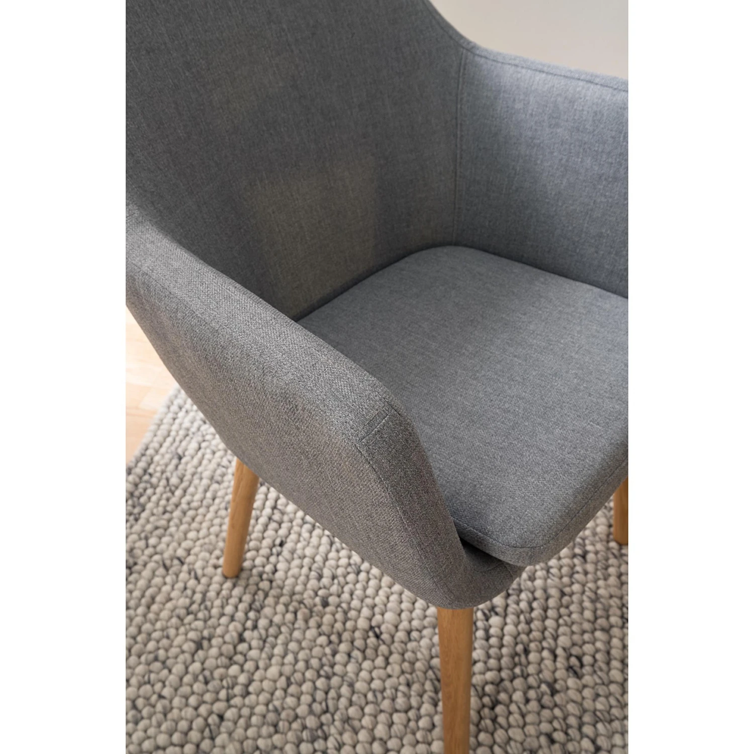 Stuhl Nicholas vereint frisches modernes Design mit hohem Sitzkomfort. Der farblich abgesetzte Bezugsstoff bringt einen pfiffigen optischen Akzent ins Esszimmer.Darüber hinaus bietet er noch jede Menge Sitzkomfort.In seiner tiefen Sitzschale fühlt man sich rundum gut aufgehoben.Der Stuhl steht elegant auf runden Beinen aus geöltem Eichenholz.Besonders gut harmoniert der Stuhl mit klassischen Massivholztischen.