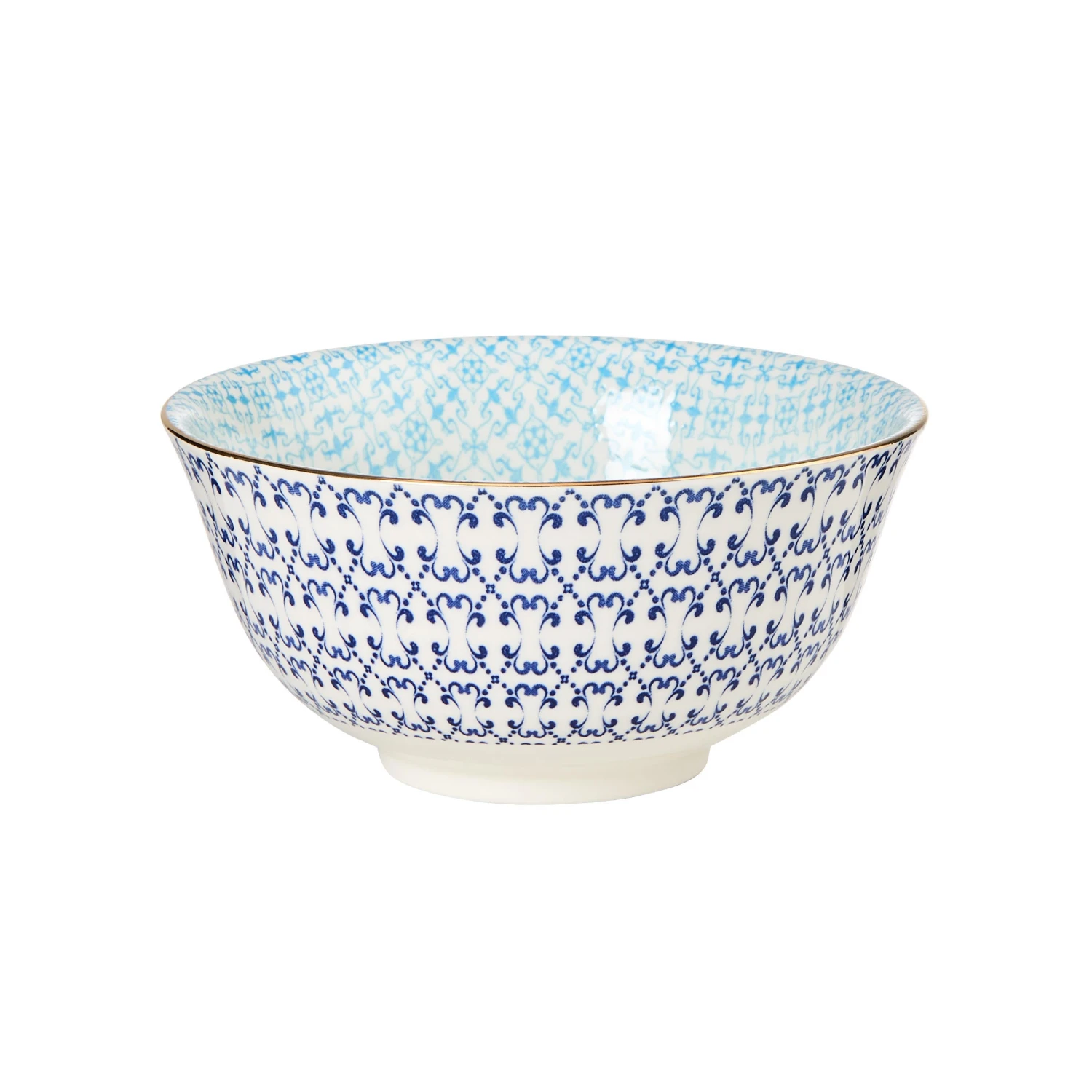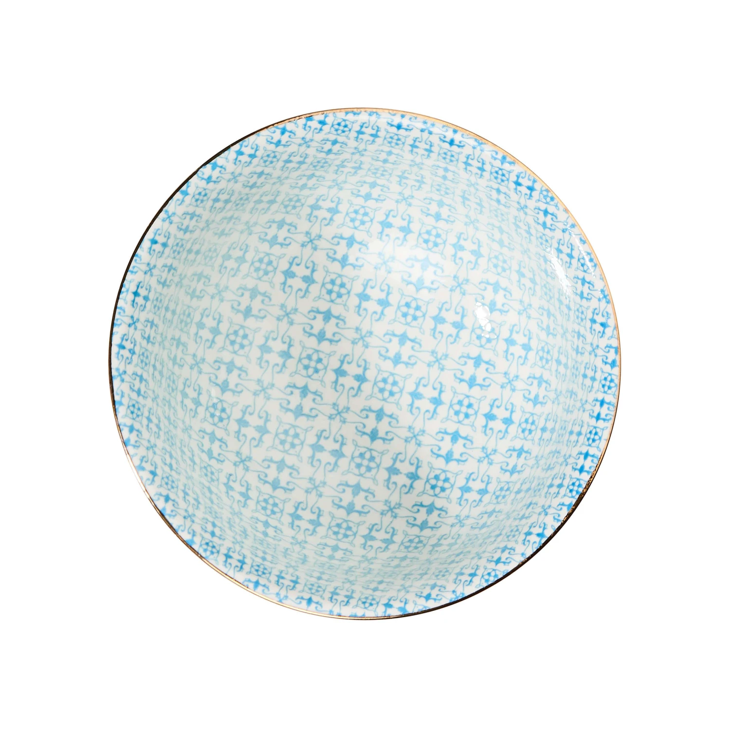 Schale mit Stil: Das bunte Ornaments-Geschirr passt in jede moderne Küche und ist ein stylischer Blickfang auf Ihrem Esstisch. In dieser blau-weiß gemusterten Porzellanschale mit Goldrand im 6er-Set können Sie Ihren Gästen leckere Kleinigkeiten servieren. Vielseitig einsetzbar: Als Müslischale, als Suppenschale, für Süßigkeiten, Chips und andere Snacks. In verschiedenen Varianten und Größen erhältlich.