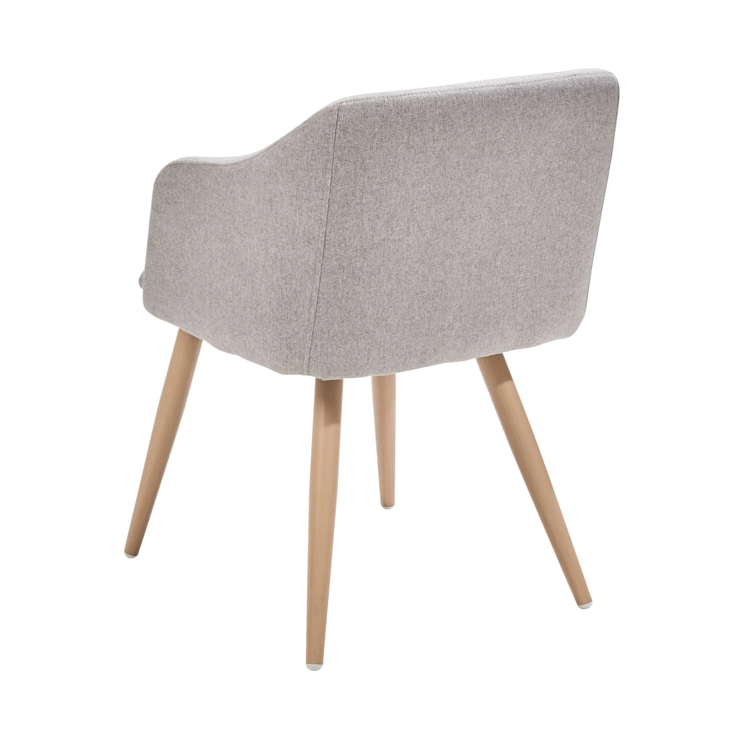 Bequemes Sitzen und stylisches Design in einem: Alles passt perfekt beim Rock ’n‘ Soul-Stuhl. Vom pflegeleichten grauen Filzbezug auf dem gepolsterten Sitz über die komfortablen Armlehnen und Knöpfe in der Rückenlehne bis zu den nach unten hin zulaufenden Metallbeinen in Holz-Optik. Mit einem dekorativen Kissen oder einem weichen Lammfell verpassen Sie dieser Sitzgelegenheit zudem einen individuellen Look. Sowohl für das Ess- als auch das Wohn- oder Schlafzimmer ideal.