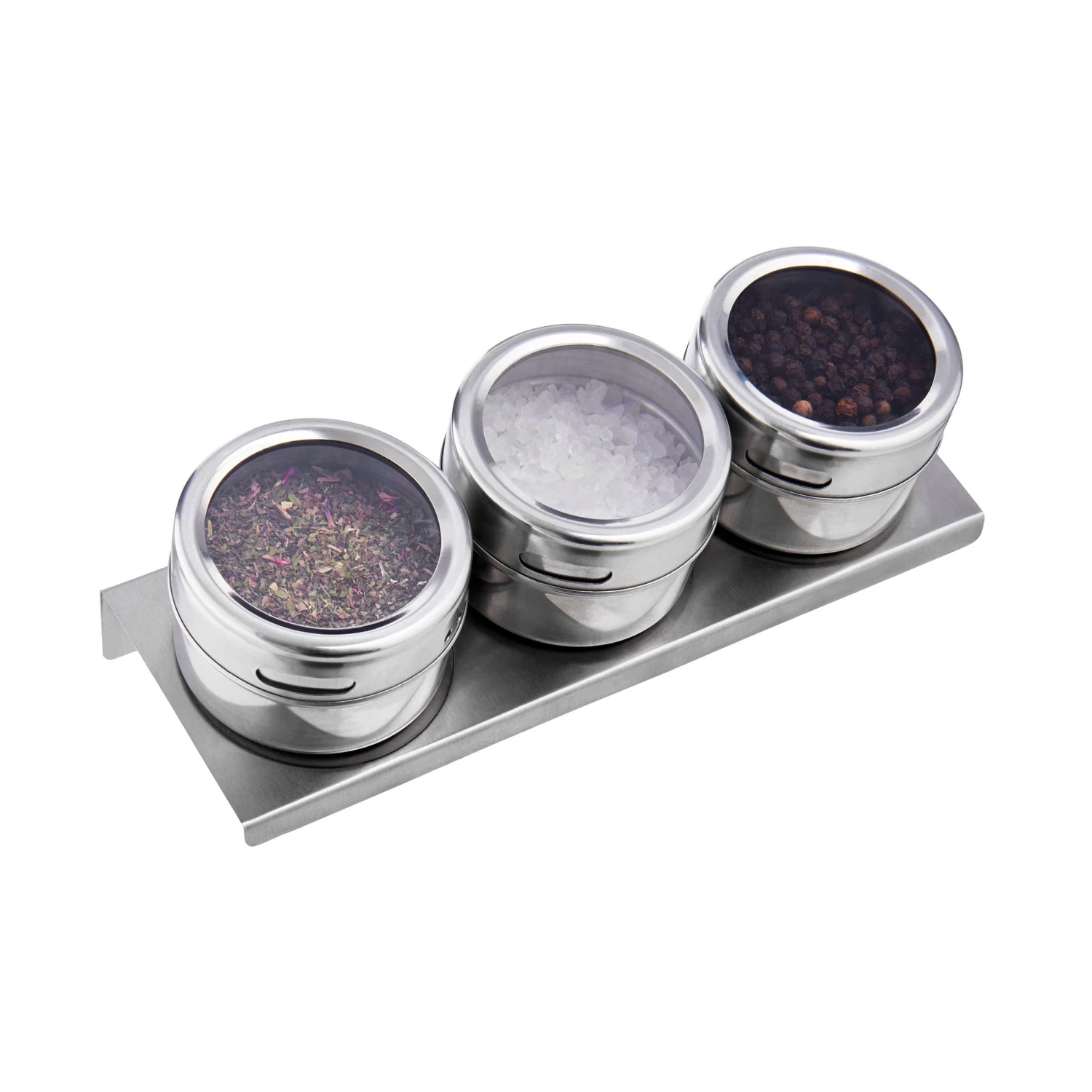 Ganz schön praktisch: In unseren drei Spice Guys Gewürzdosen mit Magnetfeld und zugehöriger Leiste bleiben Ihre Küchengewürze lange frisch und aromatisch. Ob mit der Leiste an der Wand oder beispielweise am Kühlschrank befestigt: Die magnetischen Gewürzdosen aus Edelstahl lassen sich flexibel anbringen und sorgen garantiert für Ordnung in Ihrer Küche. Und damit das gewünschte Gewürz schnell griffbereit ist, haben wir die Dosen mit transparentem Deckel ausgestattet. So sehen Sie immer, welches Gewürz sich in welcher Dose befindet.