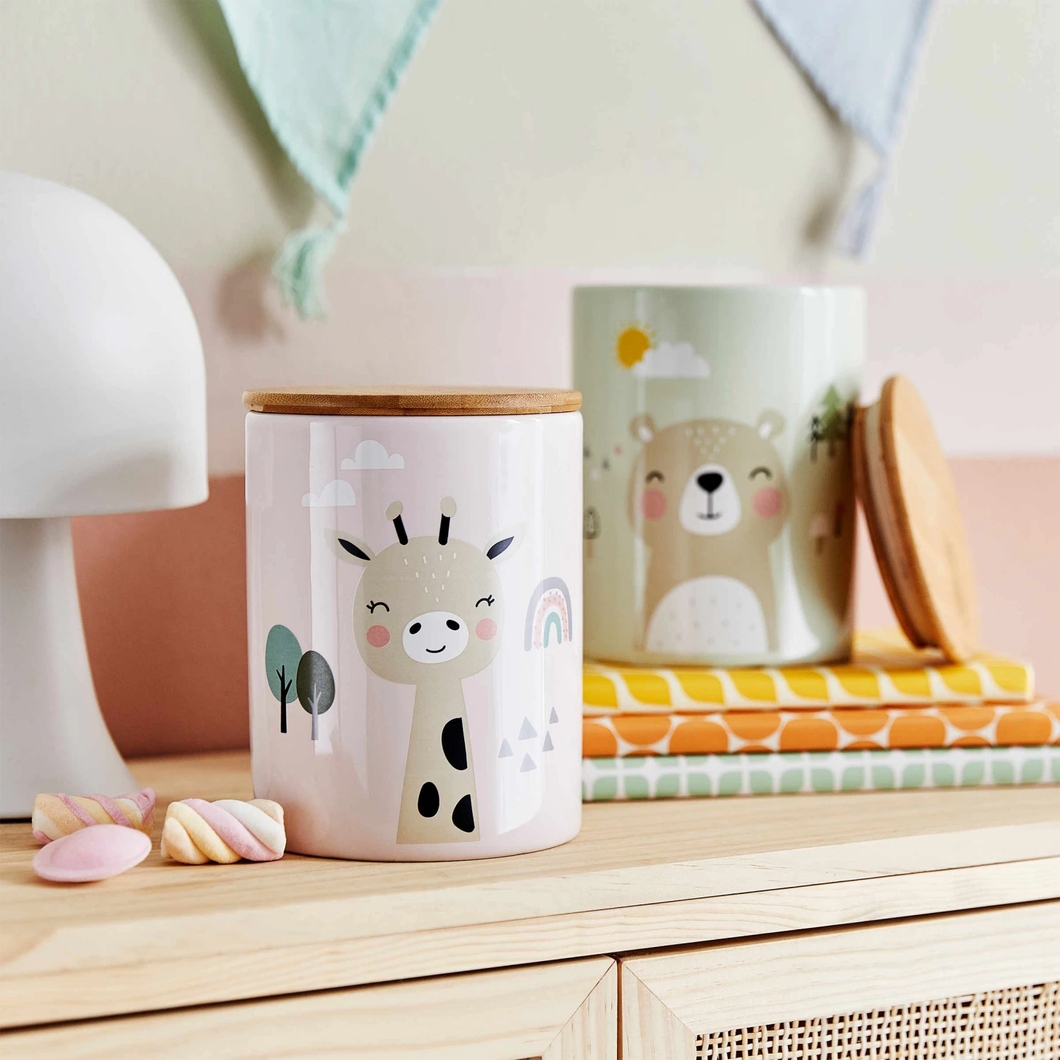 Bastelsachen, Schlüssel, kleine Schmuckstücke und alle möglichen Fundstücke sind in der Tiny Town Aufbewahrungsdose Kinder Giraffe bestens aufgehoben. Dank Silikondichtung schließt der Deckel der hübsch dekorierten Dose besonders dicht, so dass auch nichts herausfällt, wenn die Dose mal mit Schwung durch das Kinderzimmer getragen wird. Optisch kann sich die Dose übrigens gut auf dem Nachttisch, dem Schreibtisch oder einer Kommode sehen lassen und verschönert dort das Kinderzimmer.