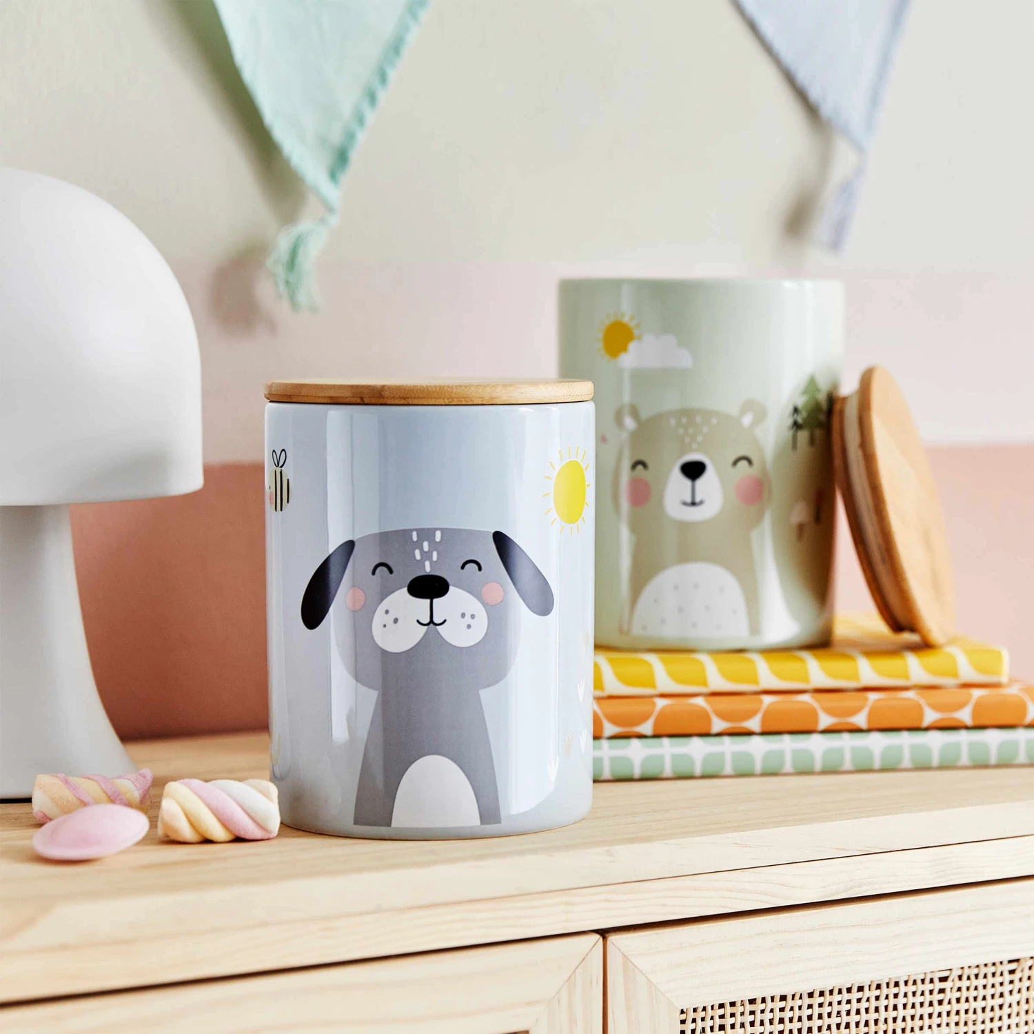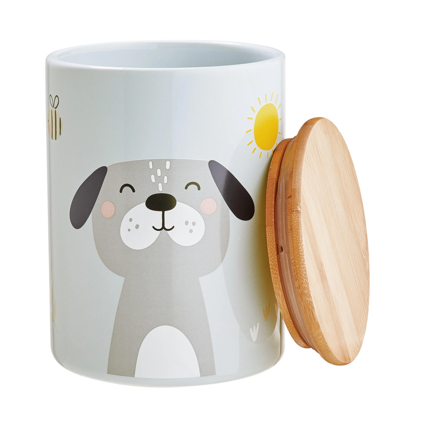 Bastelsachen, Schlüssel, kleine Schmuckstücke und alle möglichen Fundstücke sind in der Tiny Town Aufbewahrungsdose Kinder Hund bestens aufgehoben. Dank Silikondichtung schließt der Deckel der hübsch dekorierten Dose besonders dicht, so dass auch nichts herausfällt, wenn die Dose mal mit Schwung durch das Kinderzimmer getragen wird. Optisch kann sich die Dose übrigens gut auf dem Nachttisch, dem Schreibtisch oder einer Kommode sehen lassen und verschönert dort das Kinderzimmer.
