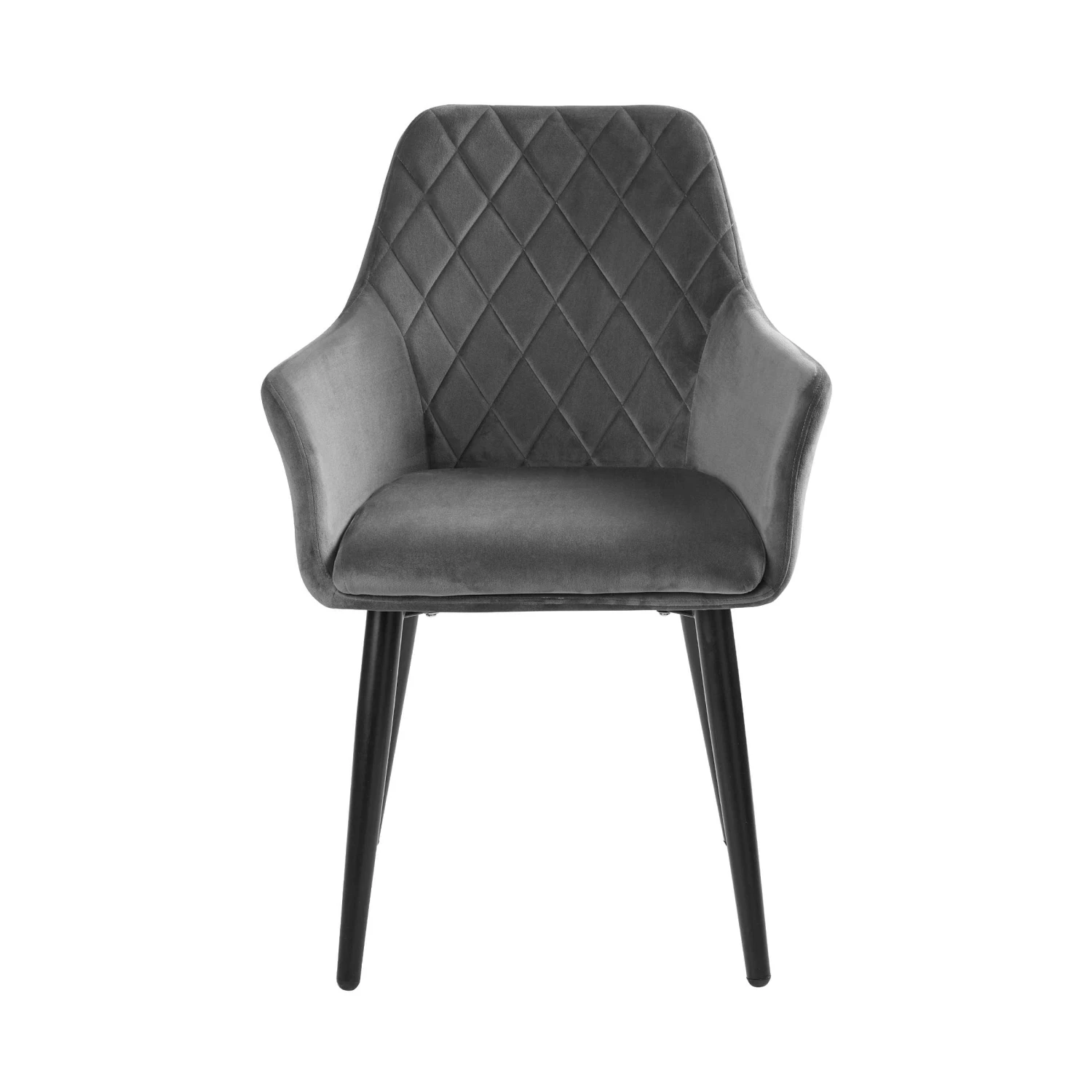 In edler Samt-Optik präsentiert sich unser Velvet-Stuhl. Die hochwertigen Rücken- und Armlehnen bieten höchsten Komfort und gewährleisten einen bequemen Sitz. Abgerundet wird das Design durch das Muster in der Rückenlehne und die nach unten hin zulaufenden Metallbeine, die in matter Optik einiges hermachen. Dieses Möbelstück lässt sich zudem problemlos kombinieren und eignet sich optimal für das Wohn-, Ess-, oder Schlafzimmer.